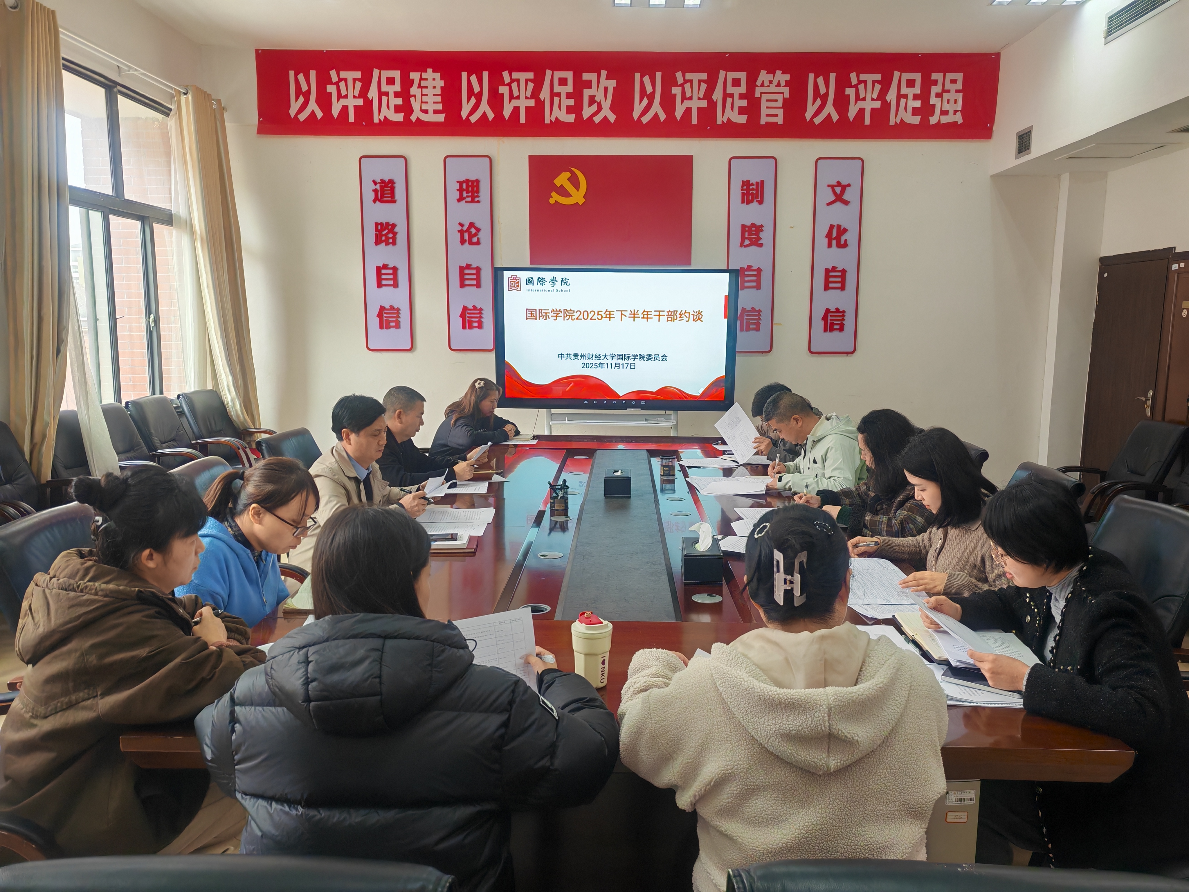 (国际学院 谢凝云 图文报道)11月17日,国际学院在西区正德楼413会议室开展2025年下半年干部约谈,学院党委书记王治航作为主谈人、学院党委班子陪同,对全体科级干部进行预防提醒谈话。