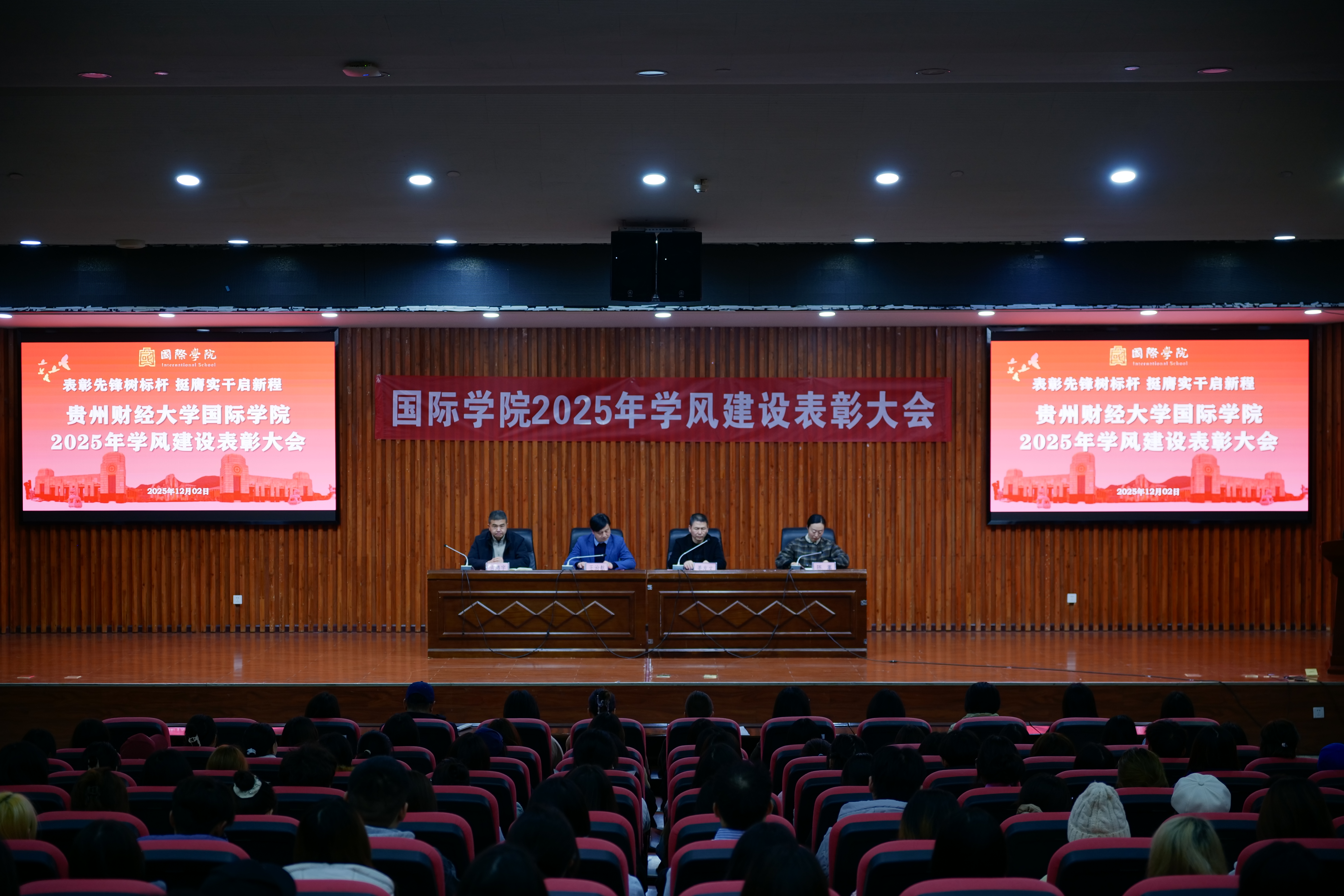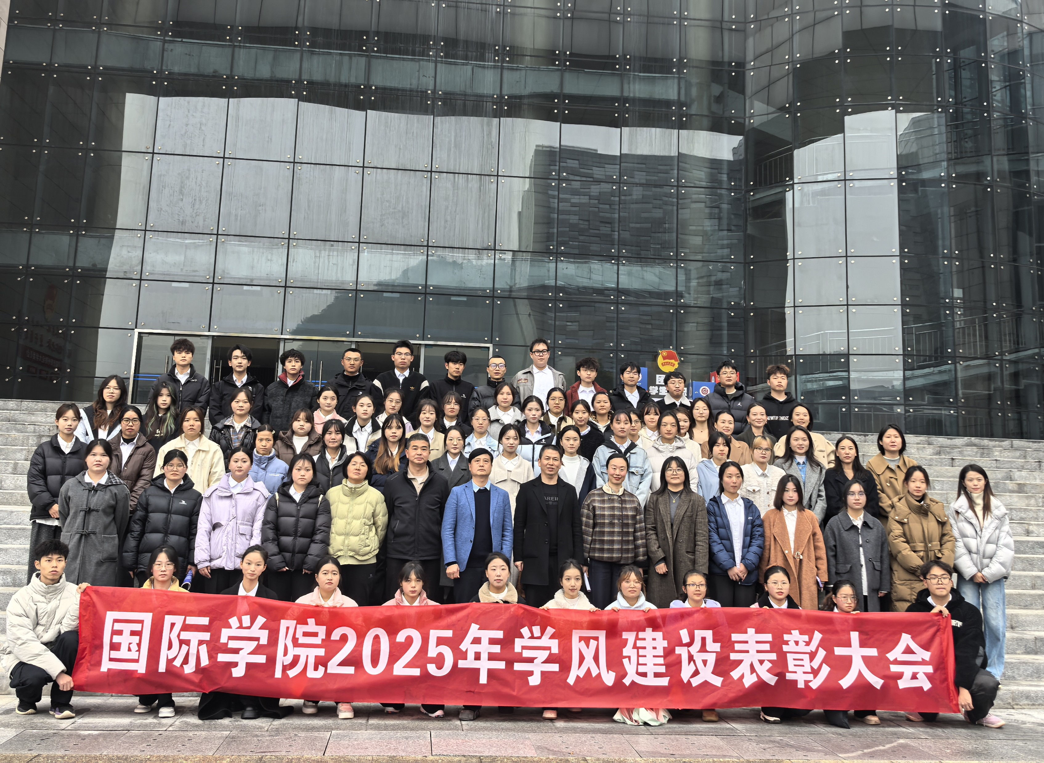 (国际学院 魏凤欣 报道|摄影 伍和晴 卢济亚 涂毓芳)为表彰先进、树立典型,激励广大学子勤奋学习、积极进取,营造优良学风,12月2日,国际学院在图书馆报告厅隆重举行2025年“表彰先锋树标杆 挺膺实干启新程”学风建设表彰大会。国际学院党委书记王治航、院长姜友文、党委副书记古鸿宇、陈嵩出席大会。学生科、团委教师代表及全体受表彰代表参加本次大会。
