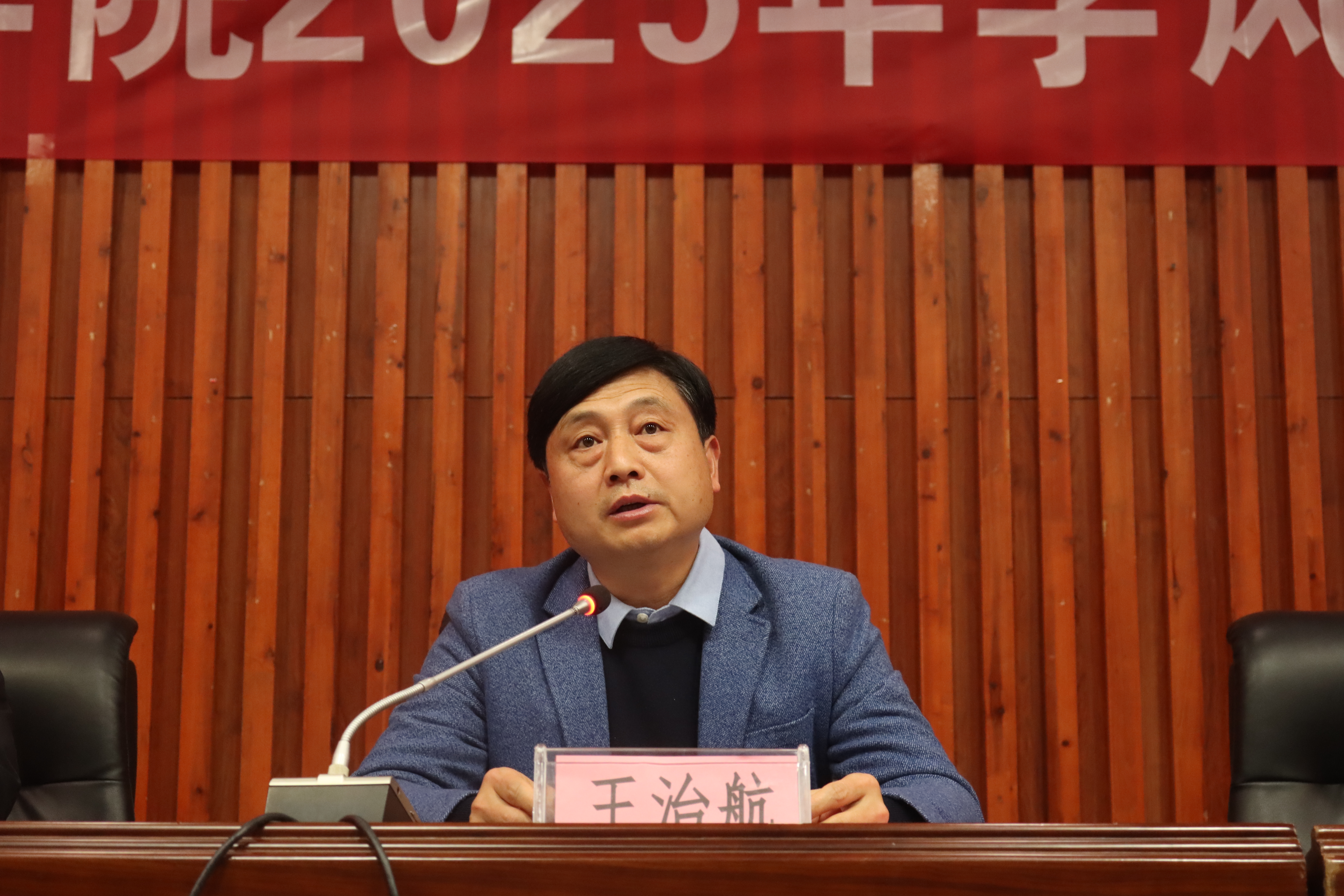 会上,姜友文作学院2025年学风建设工作总结报告。报告全面回顾了过去一年学院以立德树人为根本,构建常态化学风建设体系所采取的措施与取得的成效:通过强化思想引领、健全制度机制、丰富育人载体、实施精准帮扶,推动形成了勤学笃行的优良氛围。学生课堂秩序持续向好,在“挑战杯”“中国国际大学生创新大赛”等高水平学科竞赛中实现多项历史性突破,有23名学生光荣入伍,学院在2025年全省学生学风建设专项行动风采展示评选中荣获二等奖。