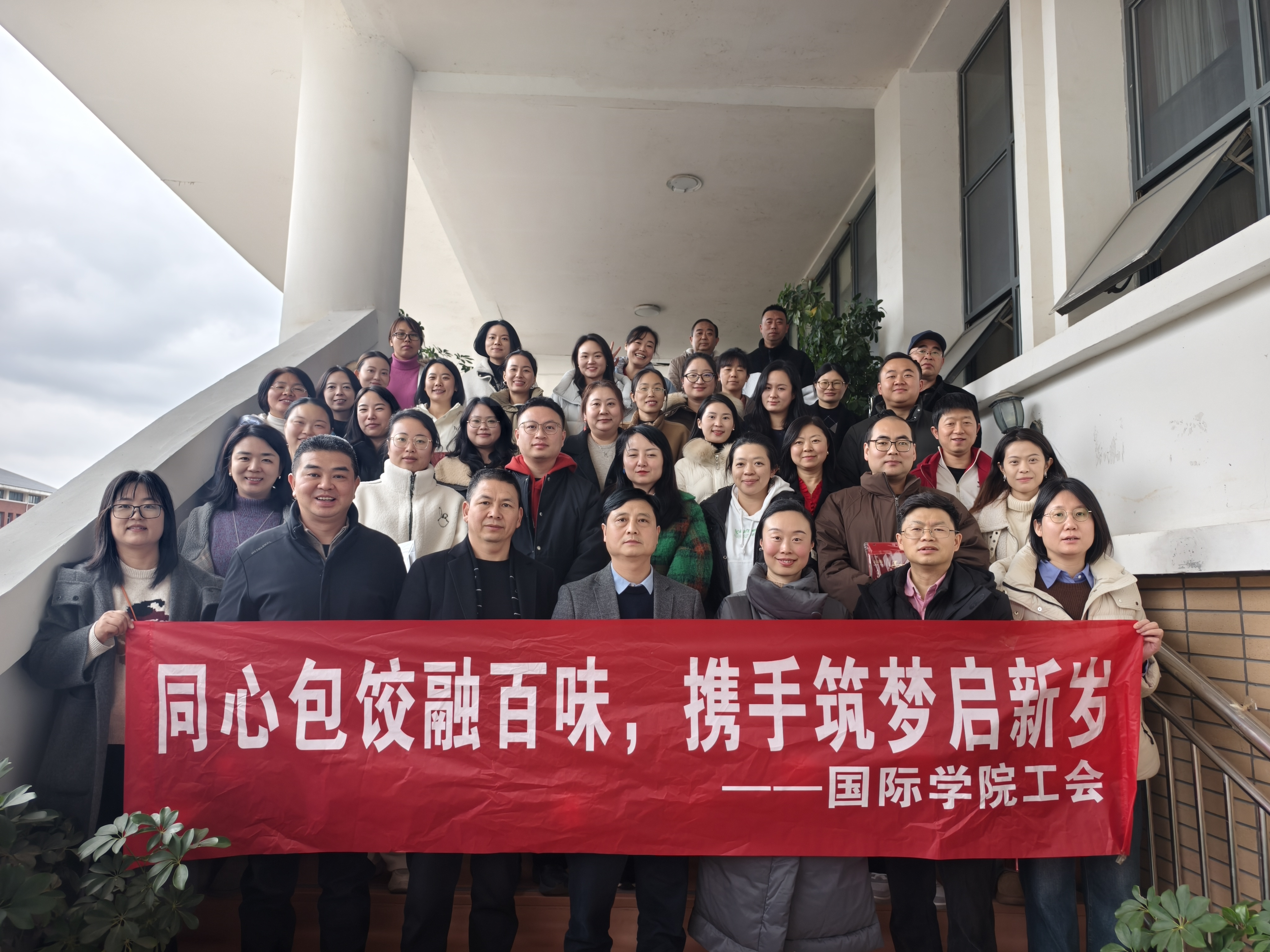 (国际学院 王伟苗 图文报道)为丰富教职工精神文化生活,传承中华传统习俗,进一步增强学院凝聚力与向心力,12月23日中午,国际学院工会组织开展“同心包饺融百味,携手筑梦启新岁”工会活动,全体教职工齐聚一堂,共祝2026年国际学院蒸蒸日上。