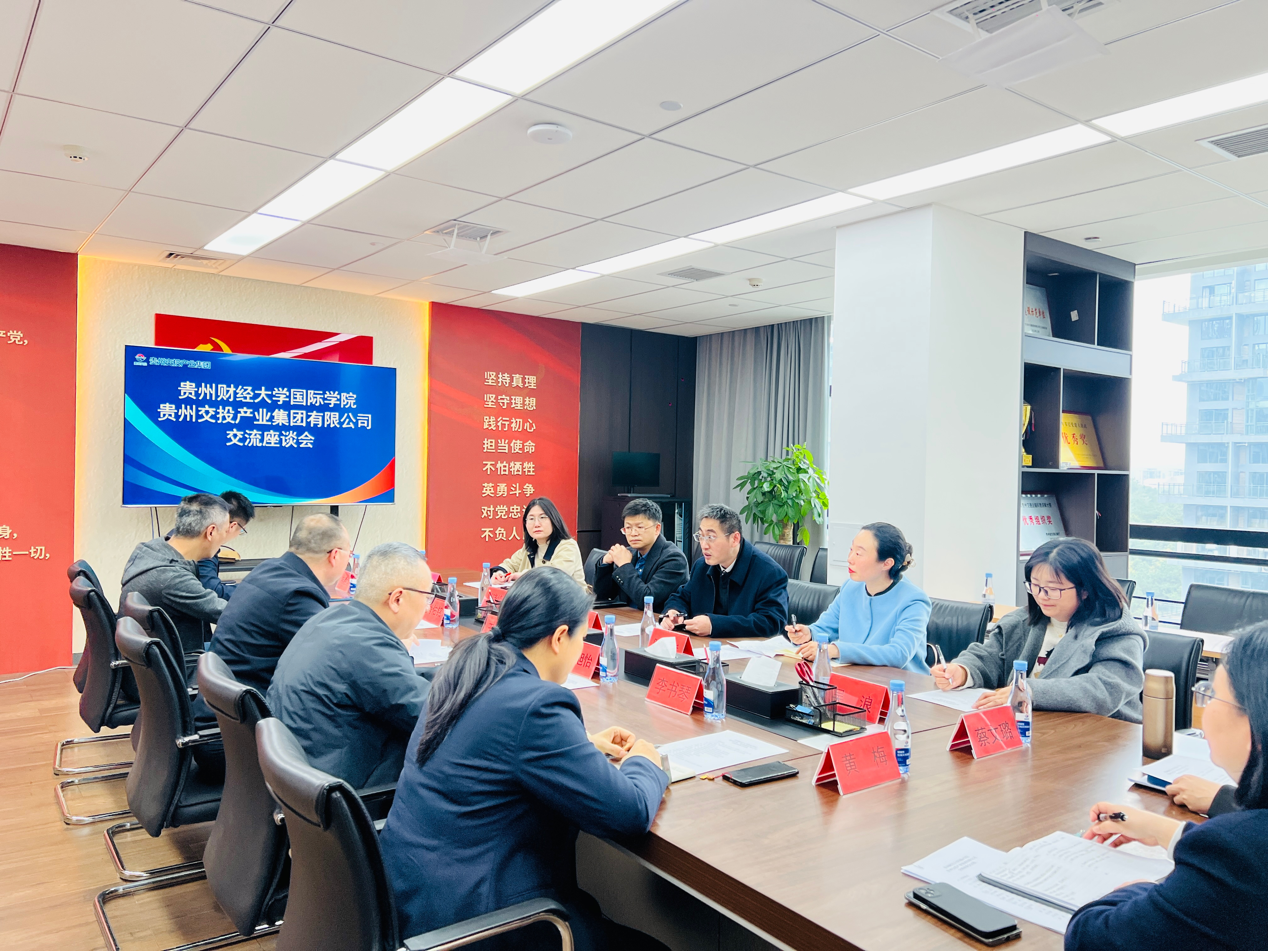 (国际学院 王伟苗 报道|摄影 李思羽)为扎实推进访企拓岗促就业专项行动,深化校企协同育人,全力拓宽2026届毕业生就业渠道,3月20日,党委常委、副校长杜剑带队赴贵州交通投资产业集团有限公司开展专题座谈交流。国际学院党委副书记陈嵩、副院长邹晓峰,学生科吴浪、王伟苗及贵州交通投资集团有限公司党委委员、副总经理王启乔及职能部门负责人参与座谈。