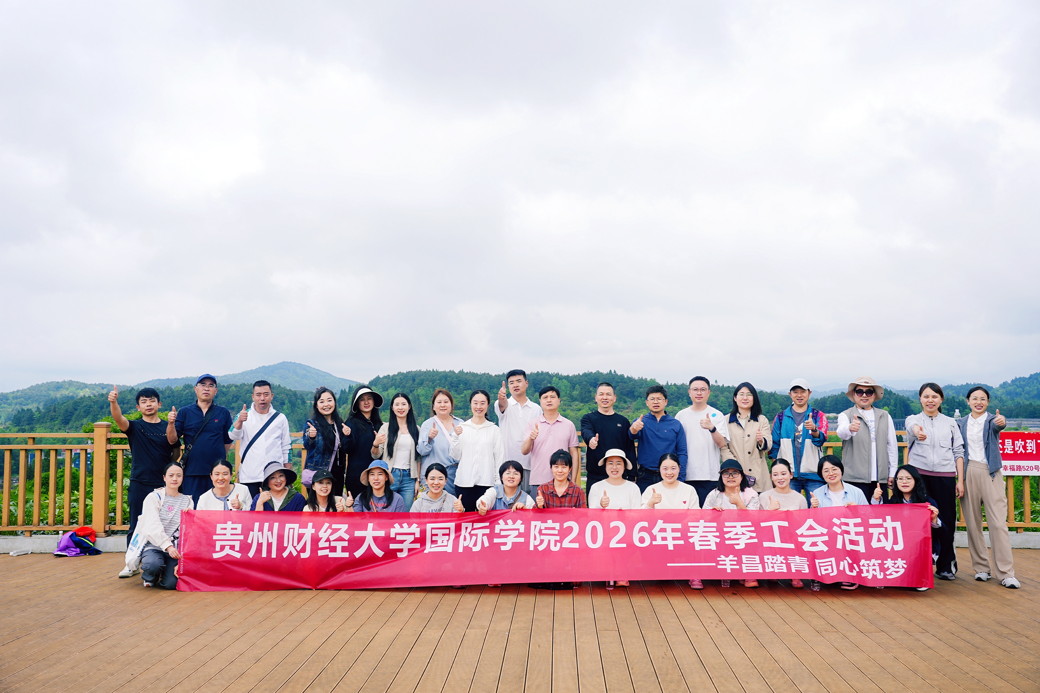(国际学院 李薇薇 图文报道)为丰富教职工业余文化生活,增强团队凝聚力与向心力,国际学院工会于4月17日组织全体教职工赴乌当区羊昌花画小镇团建基地,开展“羊昌踏青 同心筑梦”春季工会活动。