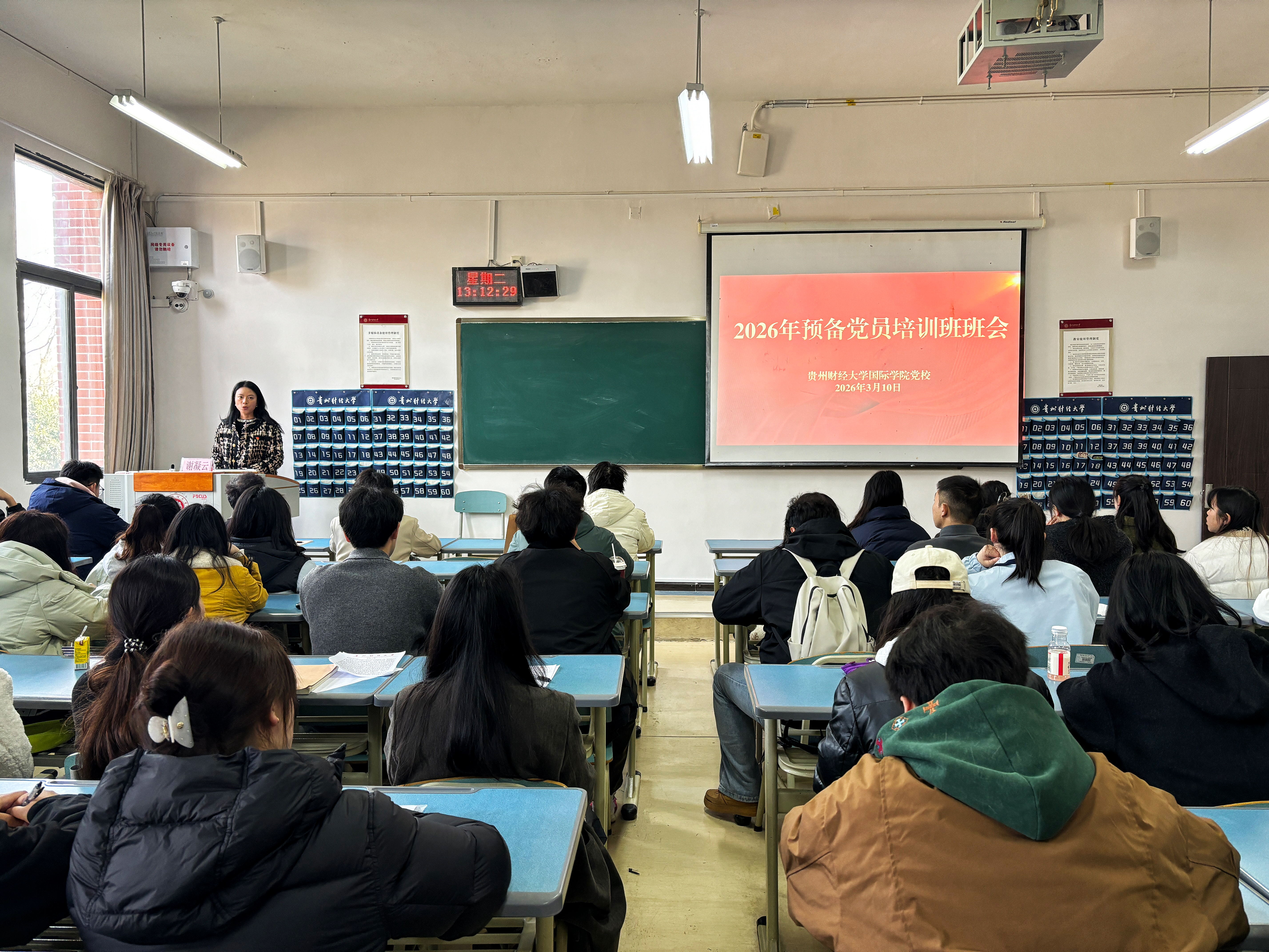 (国际学院 刘冠夫 报道|摄影 颜岫影 游证扬)3月10日中午,国际学院党校在博学楼2-15教室召开2026年预备党员培训班班会。培训班全体成员参加,班会由党政办公室谢凝云老师主持召开。