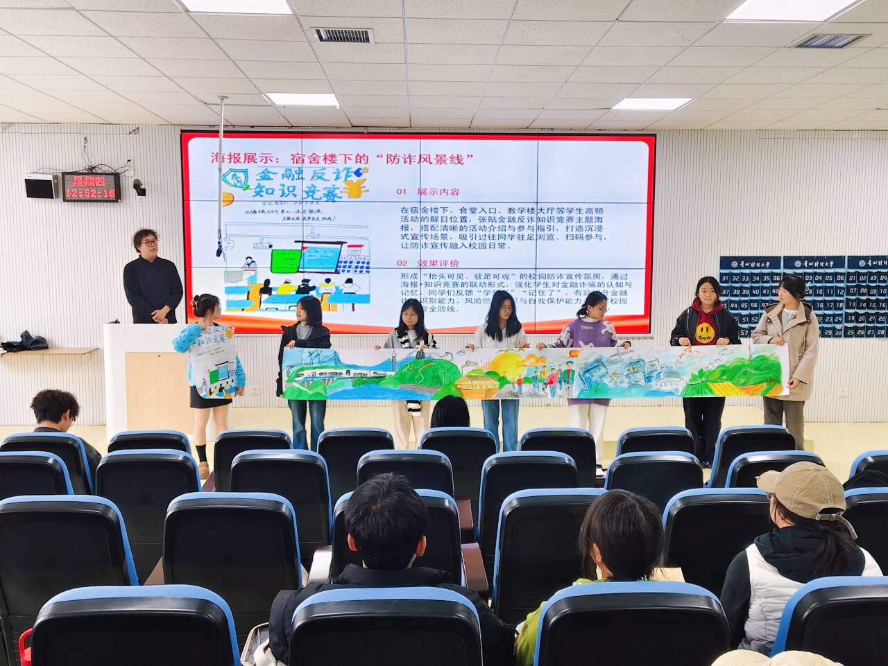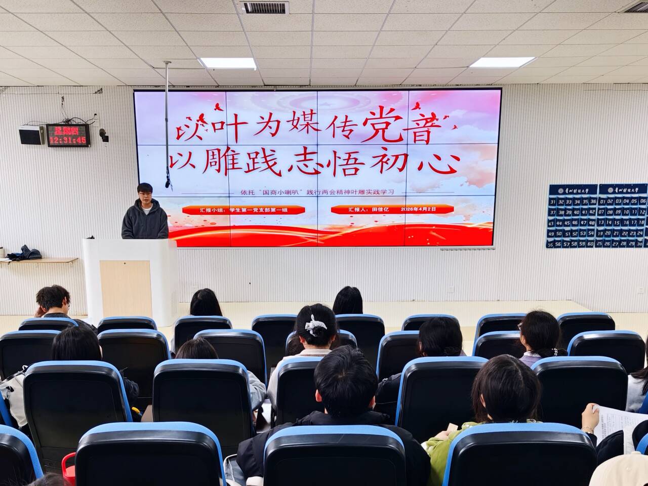本次实践教育活动紧扣党的二十届四中全会精神和省委十三届八次全会精神,聚焦十五五规划,按支部划分为十四个小组分批进行。汇报环节中,各实践小组学员紧密结合支部品牌建设,创新实践形式,通过微视频展播、主题海报制作、诗歌朗诵等多元实践形式,推动理论学习与金融防诈宣传、“国商小喇叭”等支部特色工作深度融合。同时认真反思实践过程中存在的不足,进一步明确作为入党积极分子的责任和担当。最后,谢凝云对学员们的实践汇报进行点评与总结。