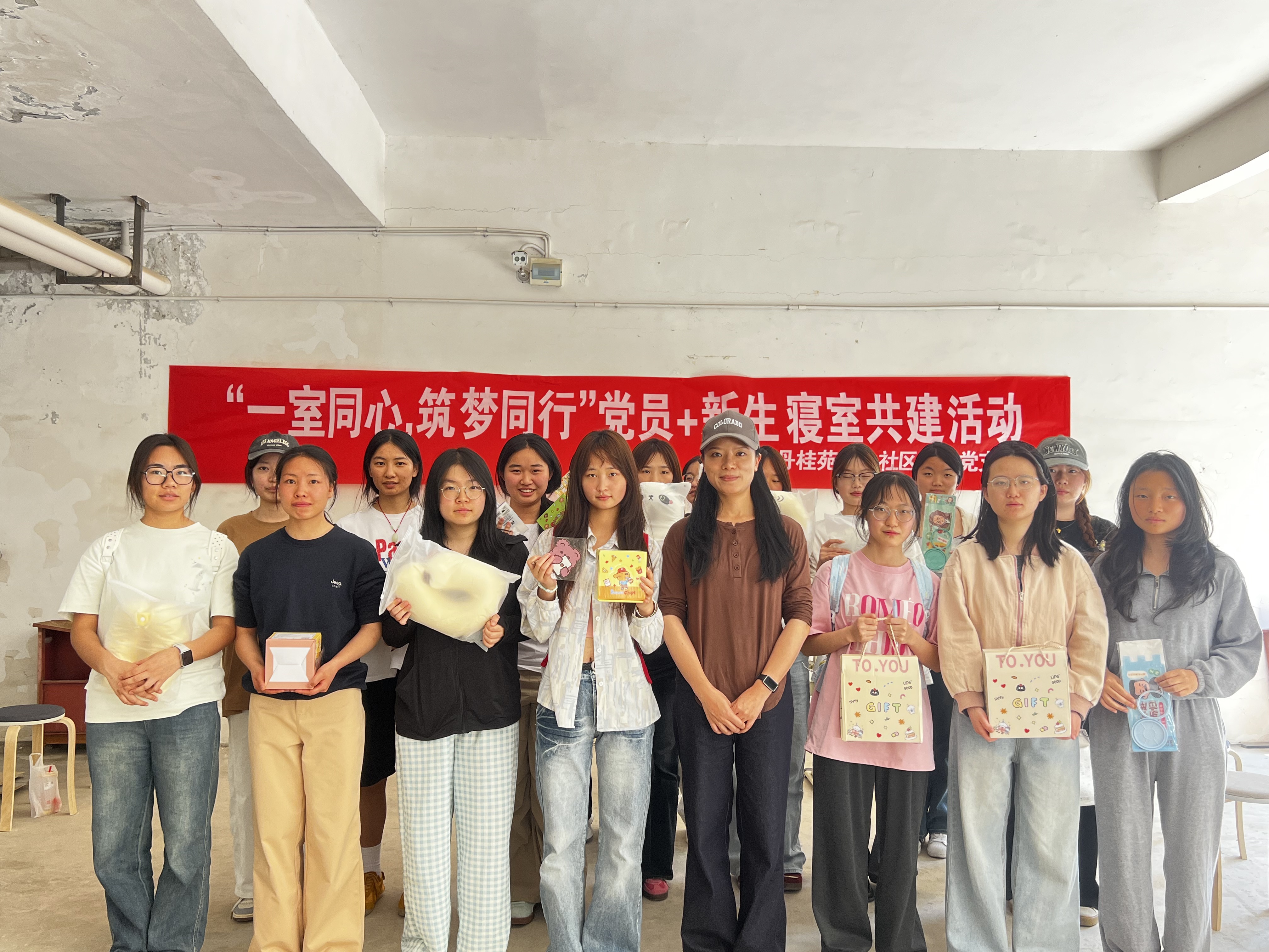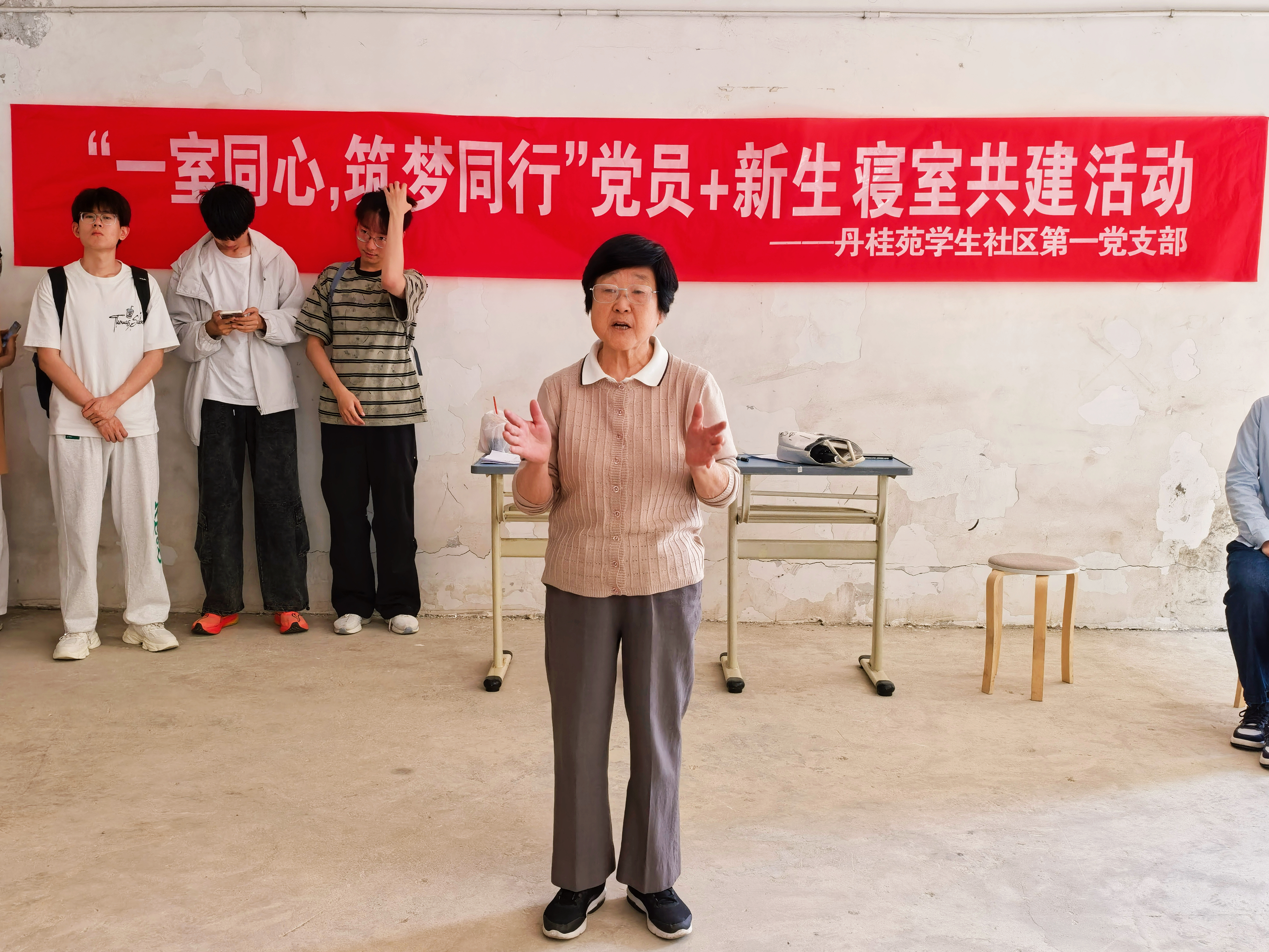 (国际学院 张钟浩 报道|摄影 唐芯兰 刘冠夫)4月10日中午,丹桂苑学生社区第一党支部联合国际学院关工委、国际学院教工党支部在丹桂苑学生宿舍二栋一楼架空层开展“一室同心,筑梦同行”党员+新生寝室共建活动。国际学院党委副书记、丹桂苑学生社区第一党支部书记陈嵩,国际学院关工委副主任余敏,教工党支部党员李薇薇和谢凝云,丹桂苑学生社区第一党支部全体支委出席活动,部分学生党员、结对帮扶的新生寝室成员共同参与。