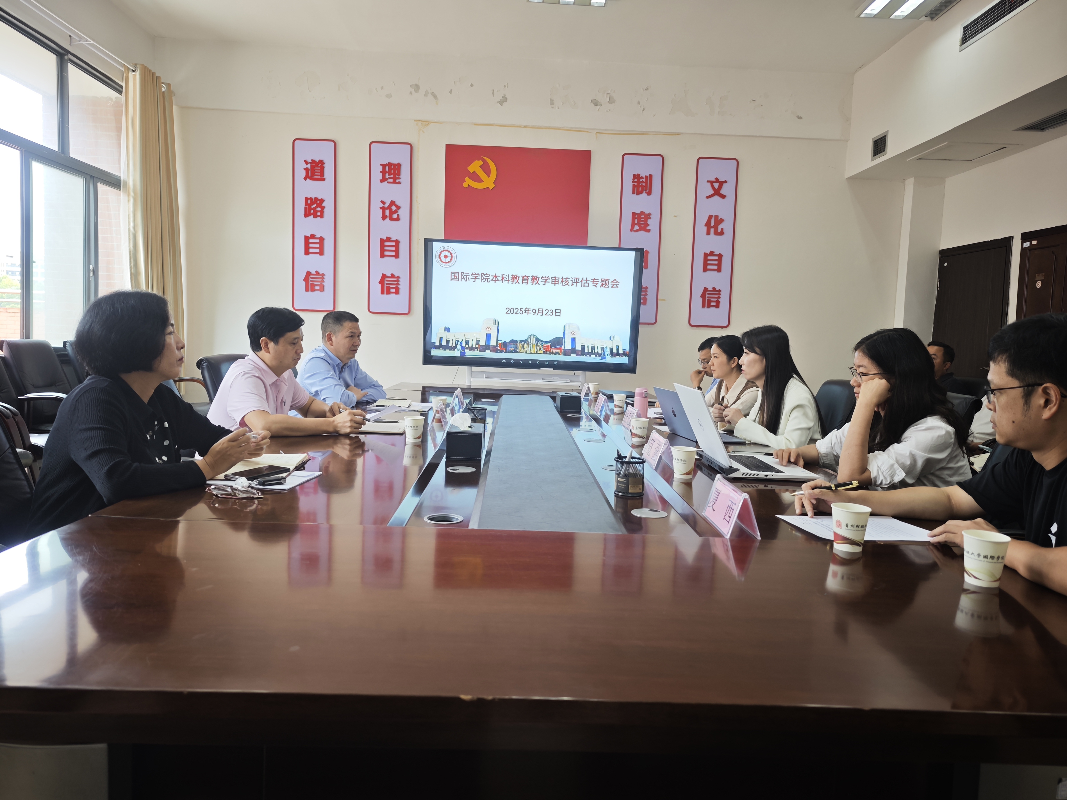 (国际学院 孙思芳 报道|摄影 吴俣靓芳)为深入贯彻落实学校关于本科教育教学审核评估工作要求,进一步统一思想、明确任务、压实责任,9月23日,国际学院在正德楼413会议室召开本科教育教学审核评估工作专业负责人会议。学院党委书记王治航、院长姜友文、副院长刘利音、专业负责人张克雯、寇燕、李丹、夏西、蒋合领及教务科、项目科工作人员参加会议,会议由姜友文主持并作专题培训。