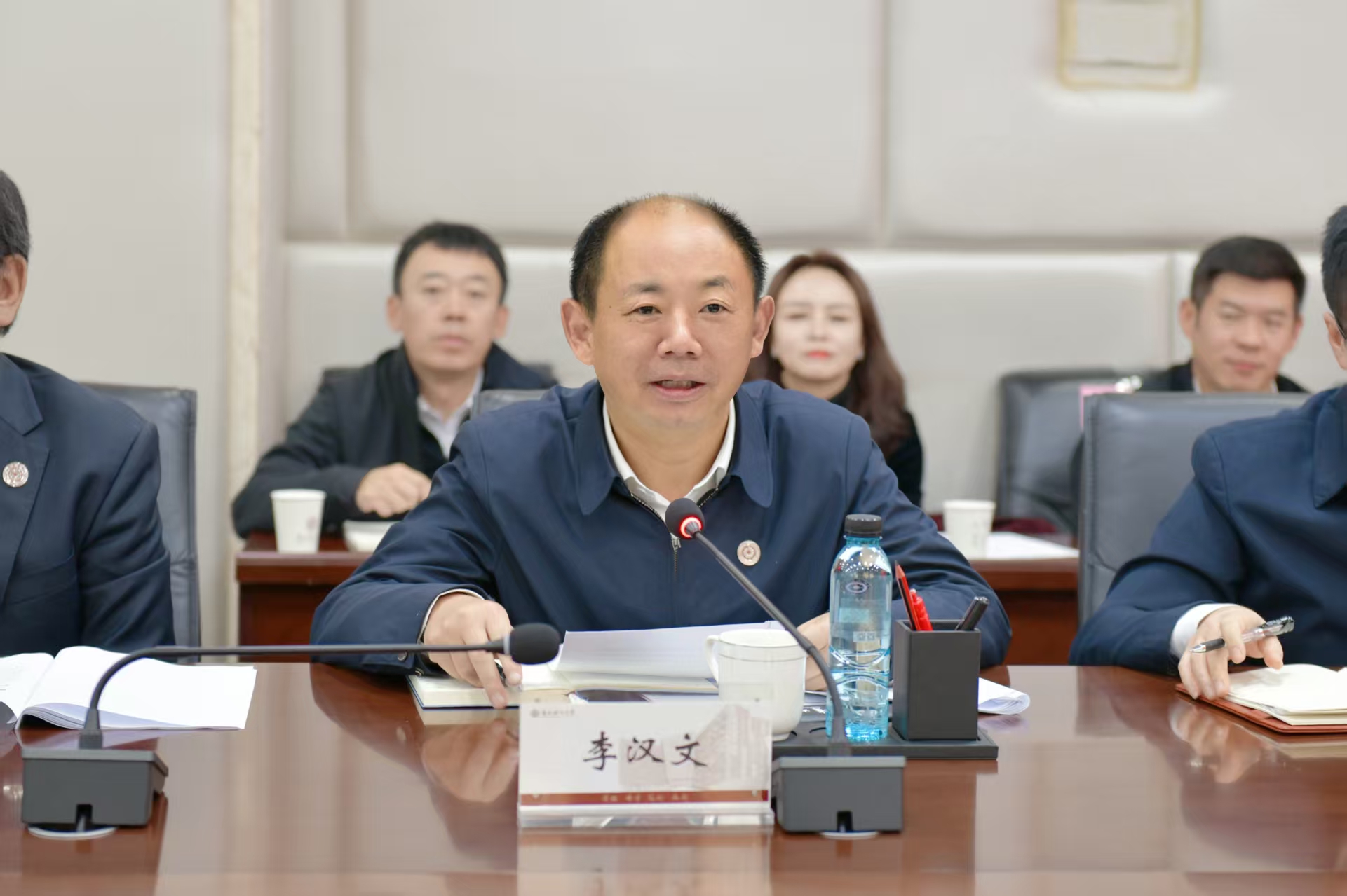 李汉文代表学校作表态发言。他首先对专家组的辛勤工作和悉心指导表示衷心感谢。他表示,专家们反馈的意见客观、中肯、全面,既充分肯定了我校在本科教育教学建设和改革中取得的成效与特色,也实事求是地指出了存在的问题和不足,并提出了详实的问题清单和改进建议,我们虚心诚恳地照单全收,并以最坚决的态度、最严格的标准、最果断的举措,全力以赴做好问题整改。学校将坚持问题导向、目标导向、结果导向,制定详实的整改方案,明确时间表、路线图和责任链,以高标准、严要求锚定问题整改,切实将思想和行动统一到学校决策部署上来,形成“全校动员、全员参与、全面整改、全力以赴”的工作格局,确保整改工作落地见效。学校将以此次评估为契机,持续深化教育教学改革,优化学科专业结构,强化数智赋能教育教学,推动思政教育与专业教育深度融合,不断提升人才培养质量和社会服务能力,努力朝着区域一流大学的建设目标稳步迈进。