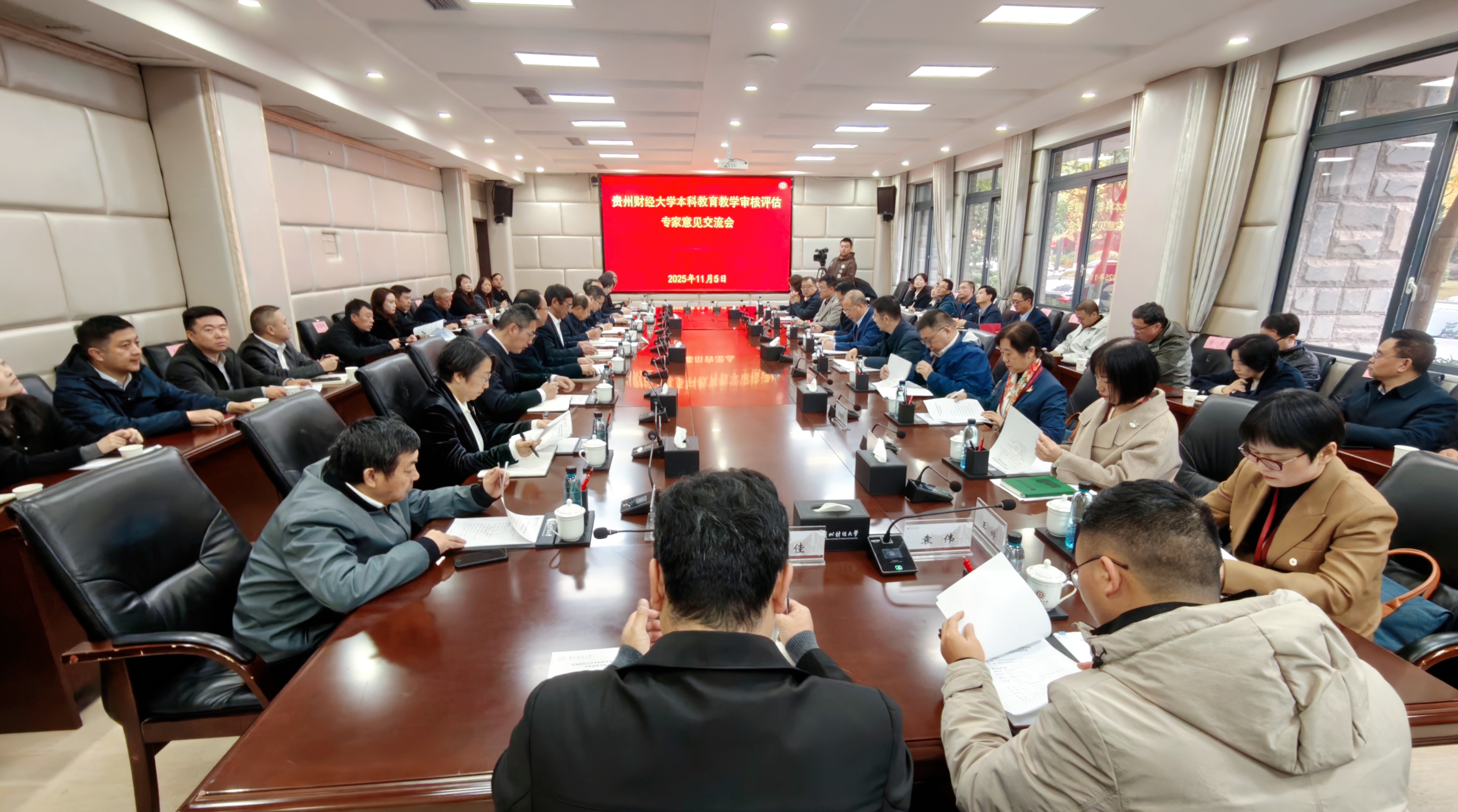 (本科教育教学审核评估办 报道|摄影 陈艺文 令狐语嫣)11月5日,贵州财经大学本科教育教学审核评估专家意见交流会在立德楼104会议室举行。教育部本科教育教学审核评估专家组组长、西南财经大学党委副书记、校长李永强,专家组副组长、遵义医科大学党委书记刘文及专家组成员;贵州省委教育工作委员会副书记李军,贵州省教育厅相关部门负责人出席会议。校领导缪坤和、李汉文、唐本文、刘华磊、杜剑、李烨、赵子铱、徐艺,副厅长级干部徐大佑、校督导团团长陈建中参加会议。会议由李永强主持。