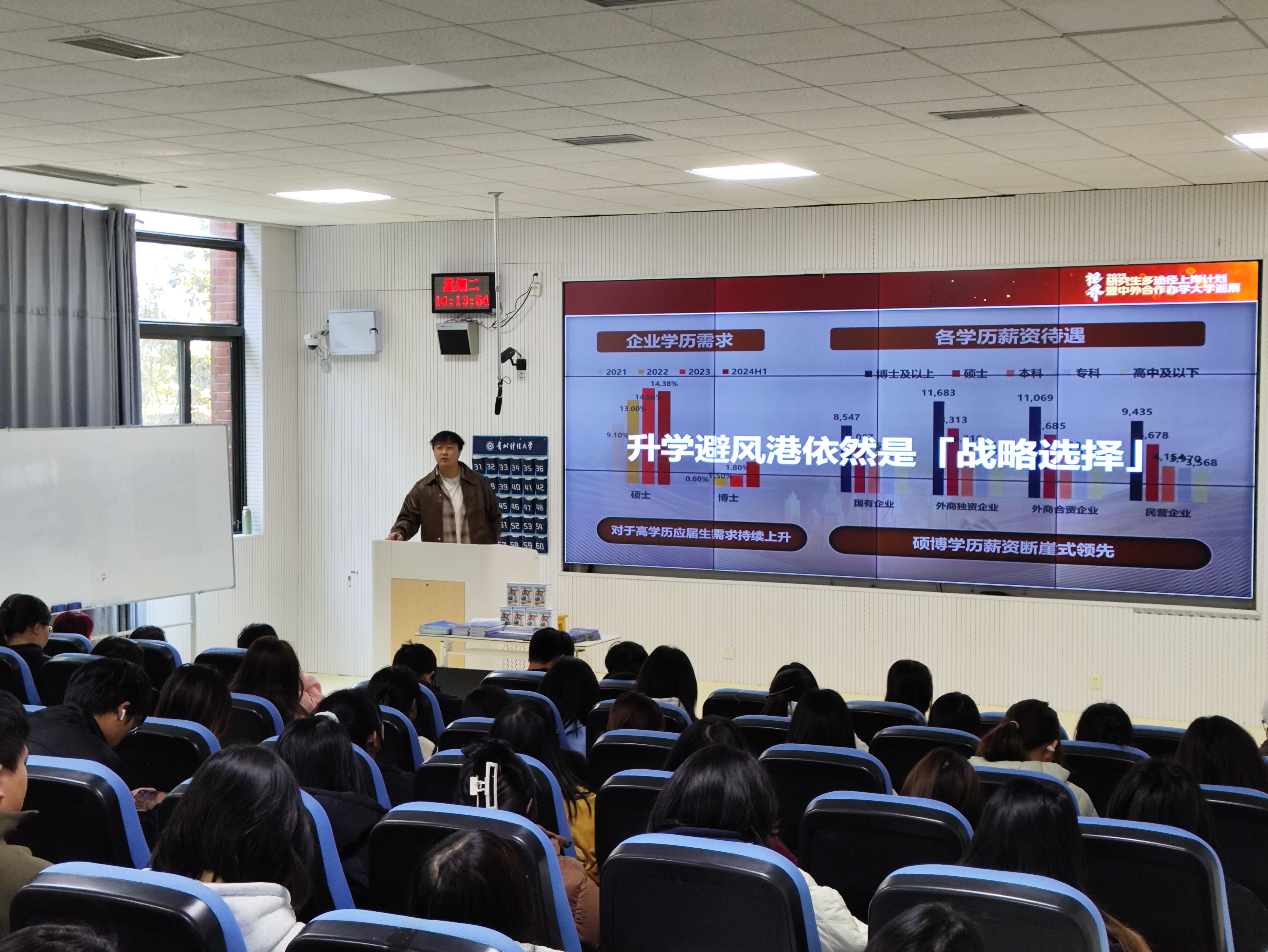 (国际学院 王婷婷 图文报道)为帮助同学们系统梳理考研与留学的规划路径,11 月 25 日,国际学院邀贵阳新东方国际教育讲师徐梓溢,在乐学楼 101 开展 “2025 研究生多途径上岸计划” 公益讲座。